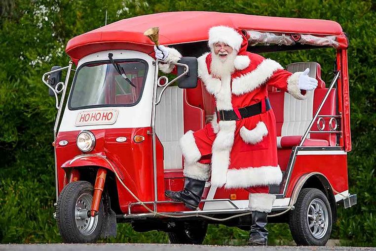 Motorcycle riders dress up their bikes, trikes and scooters with Christmas decorations and ride from all over Victoria to bring gifts, toys and food for the children and families in need.